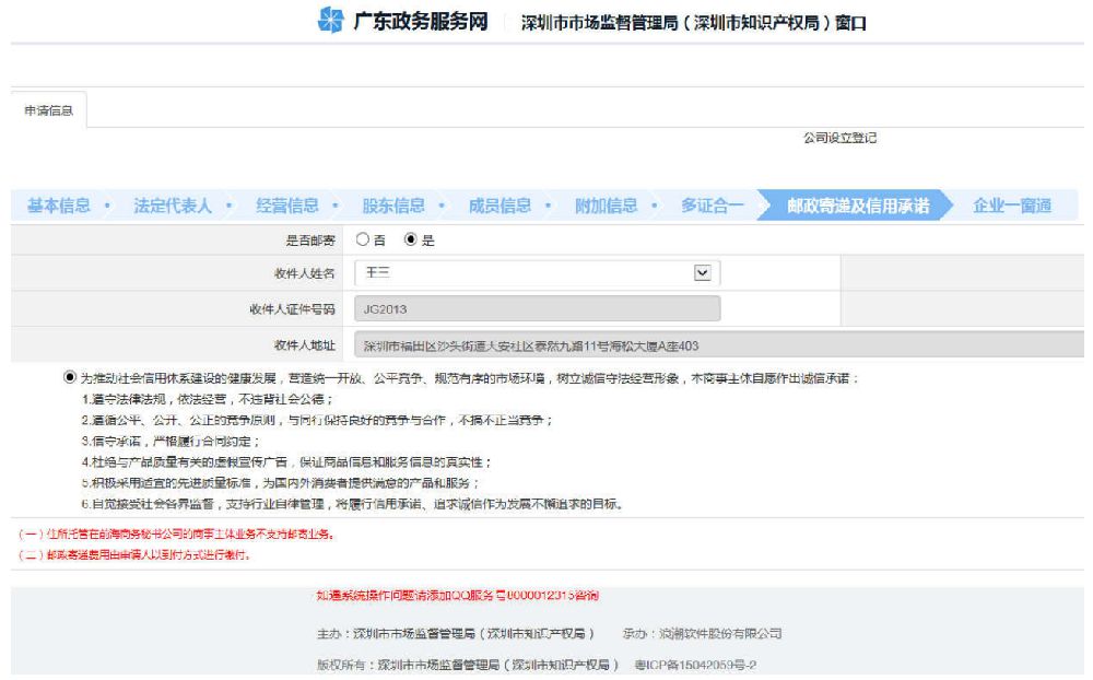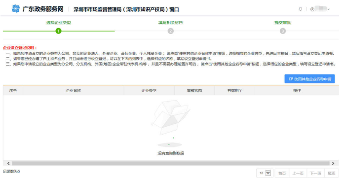 2、名称申请成功后,按照提示填写公司设立登记的基本信息、法人代表、经营信息、股东信息、成员信息、附加信息、多证合一等填报后,选择开办企业一窗通的银行开户预约服务(目前可以预约深圳市内所有的银行网点),最后提交审批。